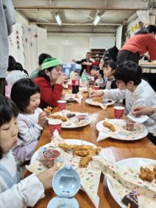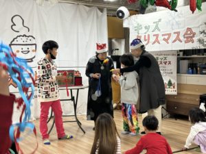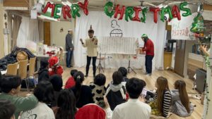 イエス様の誕生を祝いながら歌い、お話を聞き、楽しいゲームにマジックに手話の歌、美味しいおやつ。