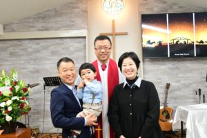 そして、礼拝の中で白のあ君の幼児洗礼式を行いました。